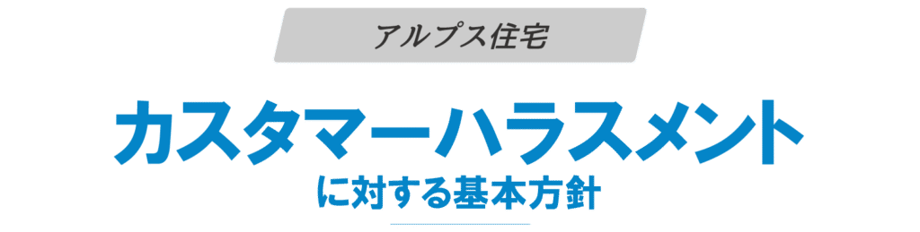 アルプス住宅サービス株式会社およびグループ会社はお客様のご要望に真摯にお応えし、住宅のサービスを通して、お客様やパートナー企業の皆様との信頼関係を築き上げることを念頭に行動をしています。しかしながら、お客様からカスタマーハラスメントに該当する行為がありましたら、本方針に沿って対応いたします。